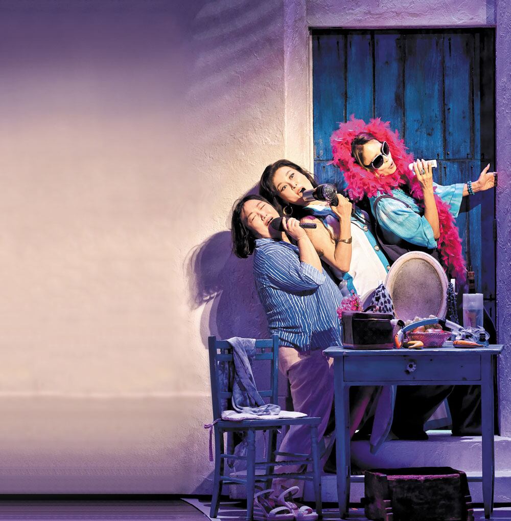You can't prevent your shoulders from swaying. *Mamma Mia!*, now playing at the LG Art Center Seoul in Gangseo-gu, is a musical that captivates people of all genders and ages. The plot follows a daughter who invites three of her mother's ex-boyfriends to her wedding on a Greek island, blending smoothly with the popular songs of the Swedish pop group ABBA. The finale, where the whole audience stands up to sing and dance like wedding attendees, is the true standout moment. There are two shows each day on the 4th, 7th, and 8th throughout the holiday season.