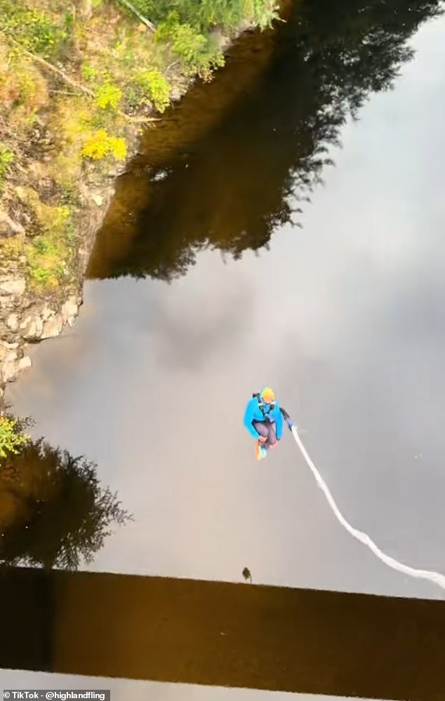 Many videos have been posted on TikTok featuring the bold leap, andin one clip,A man spins in mid-air as he descends, then the rope brings him back.