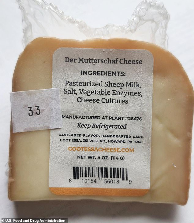 The FDAissued a warning for 64lbs of 'Der Mutterschaf' cheese following the discovery of dangerous bacteria listeria in the product.